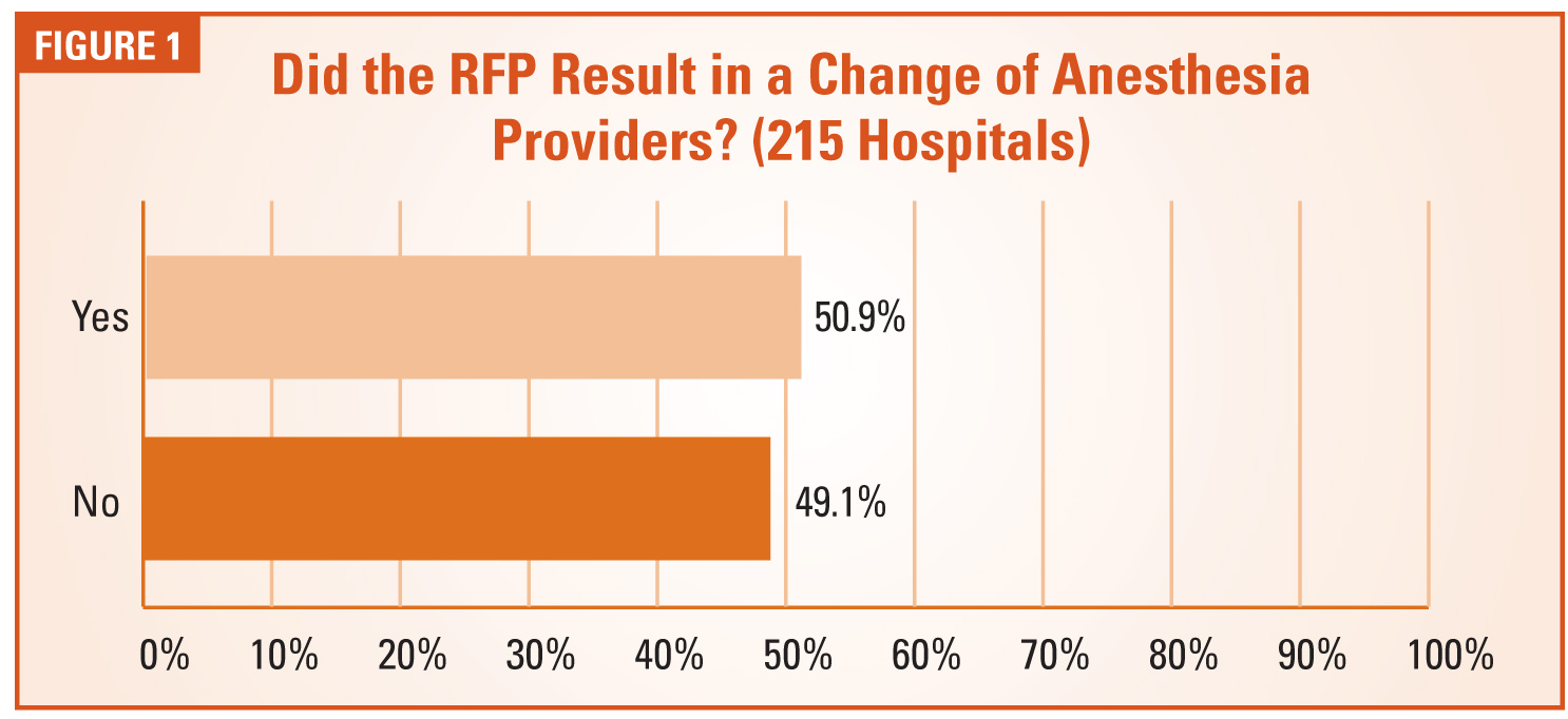 This is not the situation today. In order to understand how often RFPs were being used by hospitals to change their provider group, Enhance Healthcare Consulting (EHC) surveyed 215 hospitals. The results (Figure 1) show a statistical tie between the hospitals that changed groups (50.9 percent) and those that did not (49.1 percent). It should be disturbing to an incumbent group that it has an approximately 50/50 chance of being replaced as a result of an anesthesia services RFP.