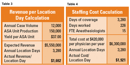 Based on the determination of total annual anesthetizing locations, it is possible to calculate both the revenue metric and the cost metric, and ultimately to work through various scenarios to balance the two.