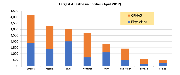 The new millennium saw the proliferation of a new anesthesia entity: the mega group, a practice of 100 or more providers. Then, before long, the anesthesia market became the beneficiary of significant sums of venture capital money and many of the mega groups became aggressive national anesthesia staffing companies. Some of these same companies are now the subject of regular concern and discussion, as they aggressively pursue opportunities for acquisition and expansion. As a result, Envision (the merger of EmCare and Sheridan), USAP, Mednax, Somnia, TeamHealth and NAPA have all become household names in the world of anesthesia.