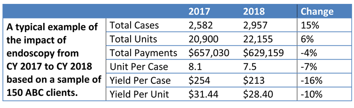That was then. As Table 1 below indicates, the average ABC client saw an increase of 15 percent in the volume of endoscopic cases. However, the table also shows that the increase in cases did not result in an increase in revenue. What we are seeing is the impact of the law of supply and demand. As the supply of a service increases, the price inevitably falls.
