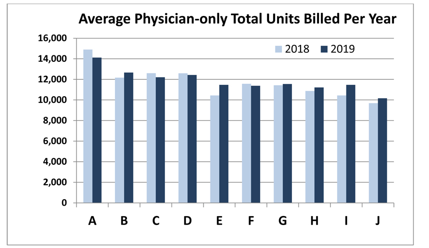 Despite the perception of hospital administrators that anesthesia providers actually control how hard they work, this is really not the case. The potential opportunity for an individual provider to generate additional or extra units is quite limited. Some providers might perform more nerve blocks with ultrasonic guidance, which would result in some additional units. Others might be more willing to pick up an extra case at the end of the day. Clearly the amount of call an individual is willing to take could have some impact as well. But when we pull the lens back and look at the practice in totality, it is quite clear that with very few exceptions, most providers work about the same.