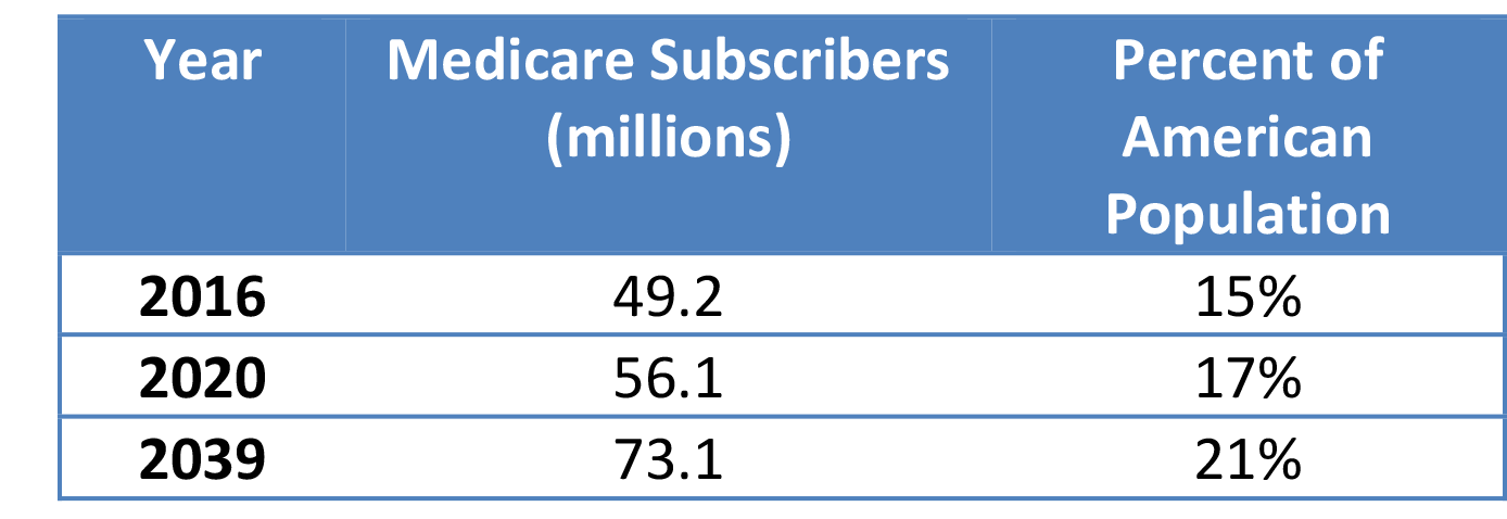 The demographic trends are truly compelling. Americans are aging dramatically. The fastest growing segment of the population consists of those over 80. It is true that not all of these older Americans will end up in the operating room for surgery, but some will. The table below clearly demonstrates how significant the current trend is. While some practices are located in communities that have higher Medicare populations, because this is a national trend no practice is immune to the inexorable growth of its Medicare population.