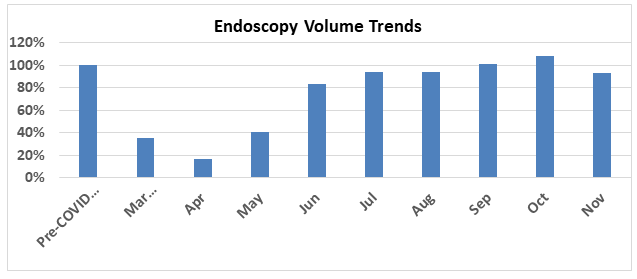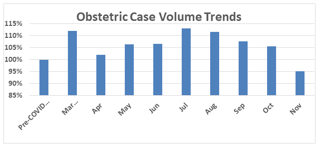 As we all know, not all cases are the same. We have found it particularly useful to distinguish three categories: obstetric cases, endoscopy cases and all other cases. As one might imagine, today’s deliveries are impacted more by what happened nine months ago than what has happened in the previous few months. The question many practices are asking, however, is whether the extensive lockdowns and quarantines may result in a baby boom in the first quarter of 2021.