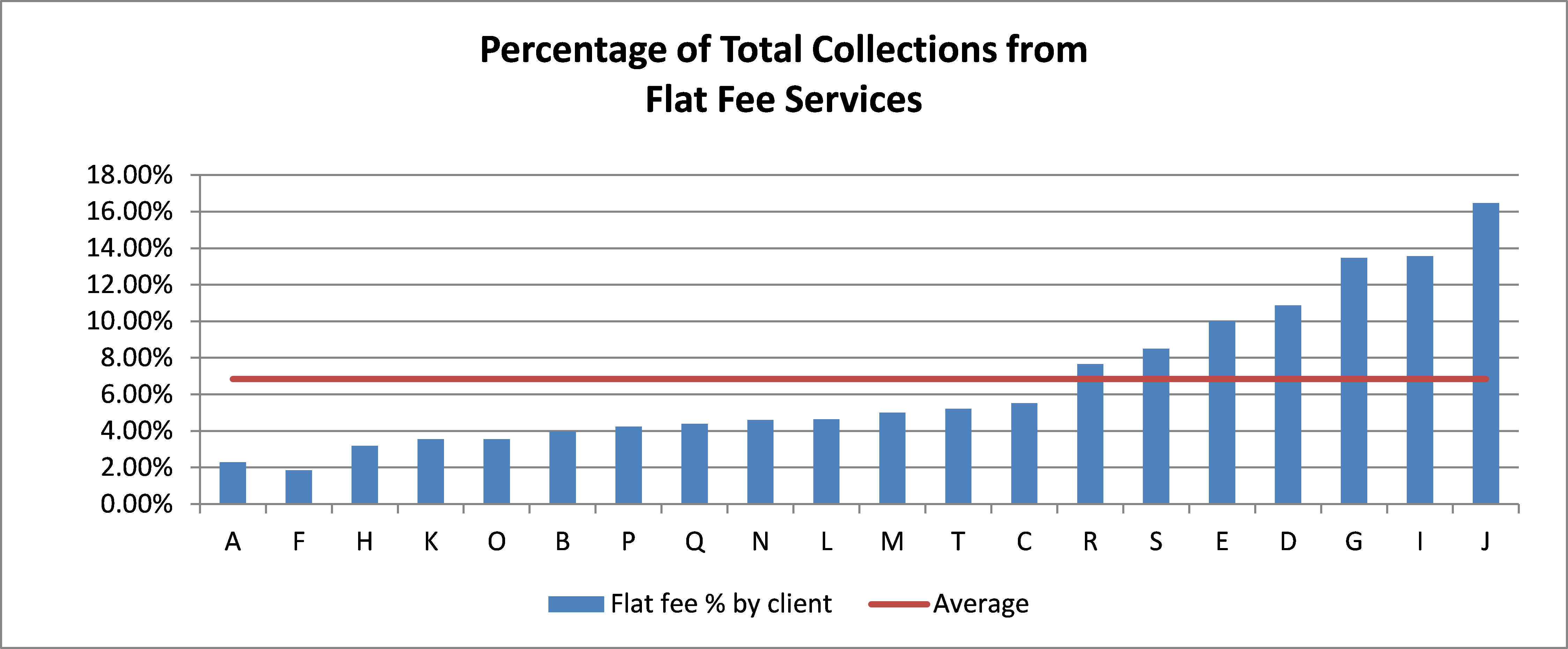 The diversity of rates raises some interesting questions. Why do some practices get such a small percentage of collections from flat fee services? Typically, this is because their practitioners do not perform many nerve blocks for acute pain management. This may be a revenue opportunity or it may simply be a reflection of the fact that a higher percentage of services are provided in ambulatory surgery centers where nerve blocks are less commonly performed.