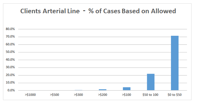 The average Medicare allowable for arterial line placements is $47.63. We determined that 56.5 percent of all arterial lines billed on behalf of the sample clients in 2020 were paid at the Medicare allowable rate.