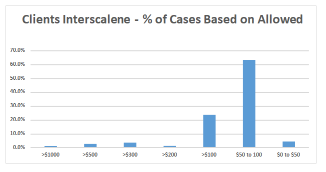 The average Medicare allowable for interscalene blocks was $68.04. In this sample, 33 percent of all procedures were paid at the Medicare rate. In addition, we found that 67.7 percent were paid at less than $100.