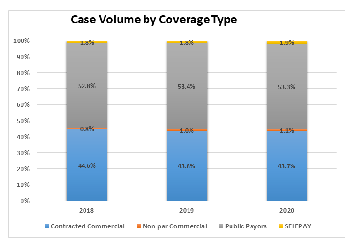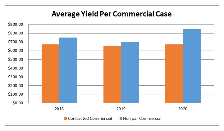 The summarized data also demonstrated that there is currently a financial advantage to being out-of-network. There is a wide variance, but overall yield per case on non-participating carriers was higher than contracted commercial reimbursement in each of the last three years.