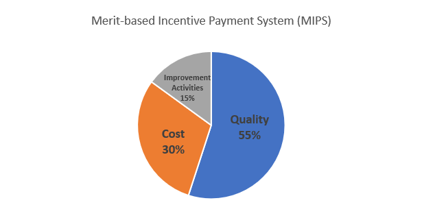 At the high level, there are only two categories that need to be considered under MIPS: Quality and Improvement Activities. These two categories comprise 70 percent of your overall MIPS composite score, as Cost is automatically calculated by CMS, based on your billing.