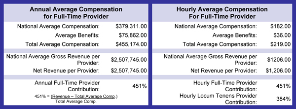 Bonus data—compensation: According to Jackson & Coker’s 2011-2012 Provider "Contribution to Operations" Percentage Calculator, national average revenues generated by anesthesiologists are 5.5 times greater than their national average total compensation.
