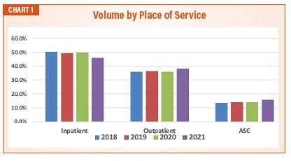 To get a sense of the impact on anesthesia services, a sample of surgical data from 15 large client practices, billed by Anesthesia Business Consultants, who are providing services across inpatient, outpatient, and ASC place-of-service codes were reviewed for calendar years 2018 through 2021. The data showed some interesting trends overall, and specifically related to the 2021 revisions to the regulatory controls on where procedures were allowed.