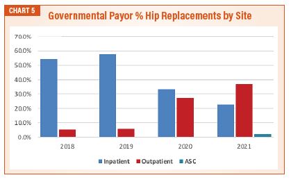 Further focusing on a specific procedure; total hip arthroplasty was moved off the IPO list in 2020, and then moved onto the ASC CPL in 2021. A review of overall volume for that procedure by place of service shows the immediate and dramatic impact of each regulatory release. Note the marked increase in the percentage of services moved to the outpatient venue in 2020, and continued growth in 2021. ASC’s were also quick to respond to the 2021 addition of these procedures to their CPL with an immediate increase in volume (See Chart 3).