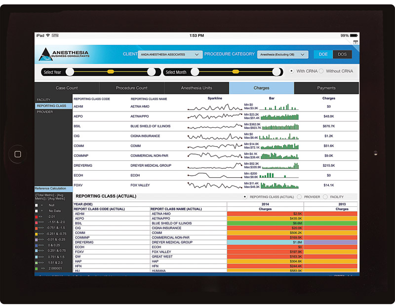 Today there is more clinical and business management data associated with pain management practices than ever before. However, with all of this data, clients are experiencing data overload. They are struggling to make sense of what matters and what the data tells them so that they can make productive business decisions. Traditionally, you had to run hundreds of reports and sift through thousands of pages to learn what may or may not have changed during the past the month, the quarter, or year. With so many priorities and so little time, many choose to postpone reviewing critical anesthesia reports.